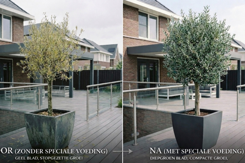 OverzichtSpeciaal voor olijfbomen, palmbomen en andere Mediterrane bomen en planten heeft Plant Health Cure voor De Olijfgaard een optimaal voedingproduct ontwikkeld. U kunt de benodigde hybride meststof eenvoudig naast de stam op de grond strooien en licht inharken. Daarna water geven. De voeding in dit zakje is maar liefst 1 jaar werkzaam! De organische meststof zorgt voor een significant sterkere groei van uw bomen door een sterkere wortelgroei (toename wortelopname tot 700%!) wat de plant tevens beter bestand maakt tegen ziekten, plagen, vorst- en droogtestress. Geeft gelijkmatige en optimale bemesting en spoelt niet uit. Bevatten organische meststof (N12-P8-K8) in combinatie met stikstofbindende en fosfaatvrijmakende bacteriën en natuurlijke humuszuren. De stikstof wordt vertraagd afgegeven.